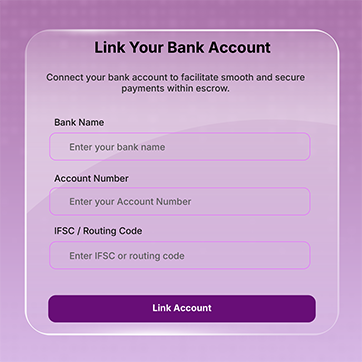 Connect your bank account to facilitate smooth and secure payments within escrow.