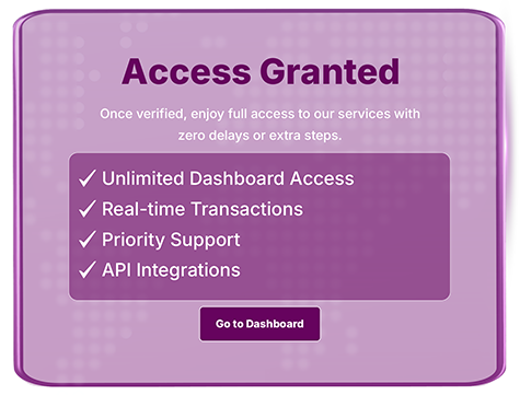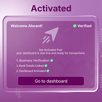 Once verified, your dashboard goes live and you’re ready to start transacting immediately.