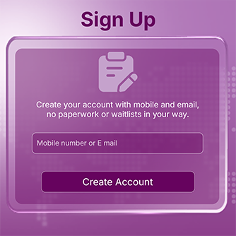 Create your account with mobile and email, no paperwork or waitlists in your way.