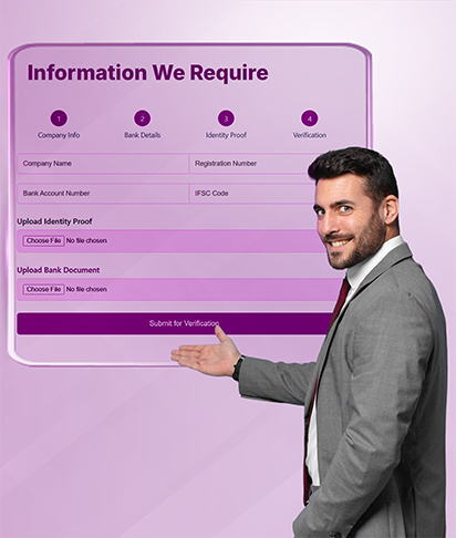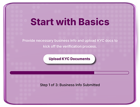 Add business and bank details, upload KYC documents - fast, secure, and easy to manage.